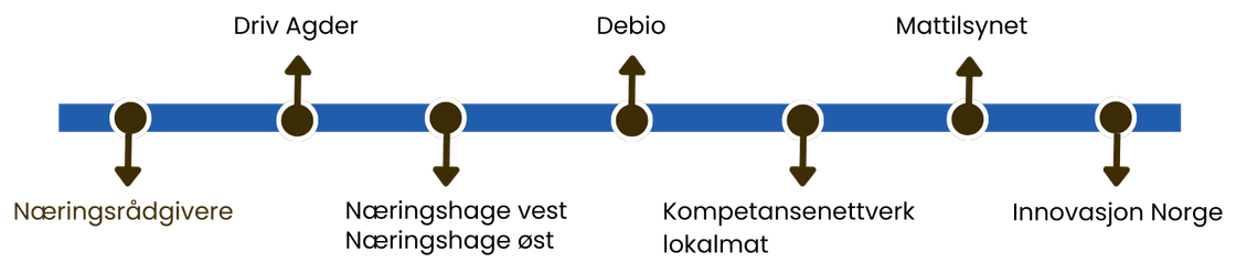 Et første og viktig steg er å kontakte din kommunes næringsrådgiver. Her kan du få informasjon som kan sette deg i kontakt med næringsklynger og nettverk du trenger for å gjøre produktet ditt kjent.
